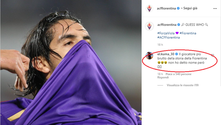 Il siparietto social tra ex viola sul profilo instagram della Fiorentina, sintomo di un bel rapporto rimasto