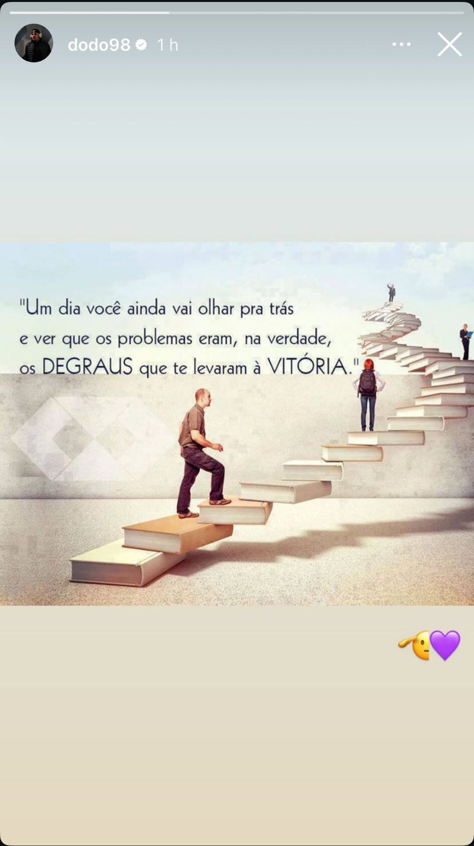 “Um dia você ainda vai olhar pra trás e ver que os problemas eram, na verdade, os degraus que te levaram à vitória.”(“Un giorno guarderai indietro e vedrai che i problemi erano, in realtà, i gradini che ti hanno portato alla vittoria.”)