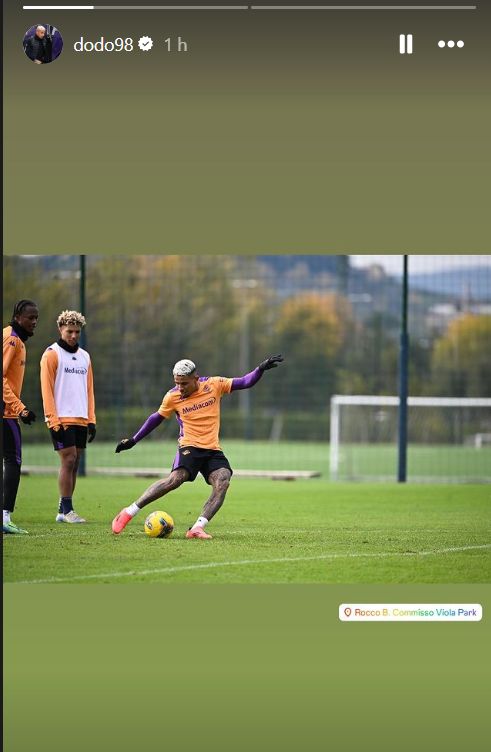 Rientrato dal Brasile, senza aver fatto il suo debutto nel pareggio con l'Uruguay, Dodo si è allenato oggi al Viola Park. Si pensava che fosse in programma per domani, ma questo è un segnale molto positivo in vista del Como domenica. Qui sotto la storia Instagram pubblicata dallo stesso giocatore viola: