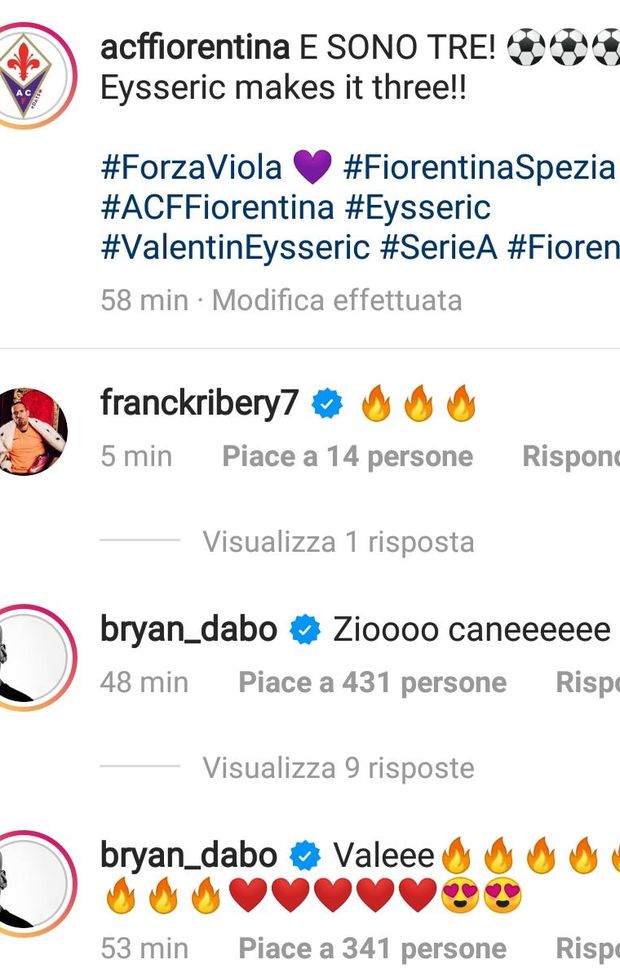 Valentin Eysseric ieri ha disputato probabilmente la sua miglior partita con la maglia della Fiorentina. Prestazione coronata dalla soddisfazione di iscriversi al tabellino dei marcatori, con la rete del 3-0. Gioia che la stessa società gigliata ha esternato sul proprio account Instagram. Al post che celebra la firma del transalpino hanno risposto Franck Ribery e un altro connazionale, ex compagno di Eysseric in Viola. Quel Bryan Dabo che ha voluto complimentarsi, da par suo, con l'ex Nizza.
