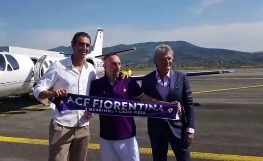 Mattinata storica a Firenze, all'aeroporto di Peretola dopo intensi giorni di trattative è finalmente atterrato Frank Ribery. Accolto da Giancarlo Antognoni e Dario Dainelli ha subito indossato una maglia viola e posato per una foto con i nuovi colori. Brevemente ha parlato anche ai media ufficiali del club gigliato, queste le sue parole: " Sono felice, sono arrivato qua con la mia famiglia, vogliamo fare qualcosa di bello tutti insieme. Ho parlato con i vertici della Fiorentina ed anche con Luca Toni. La Fiorentina è un grande club, la città è molto bella".