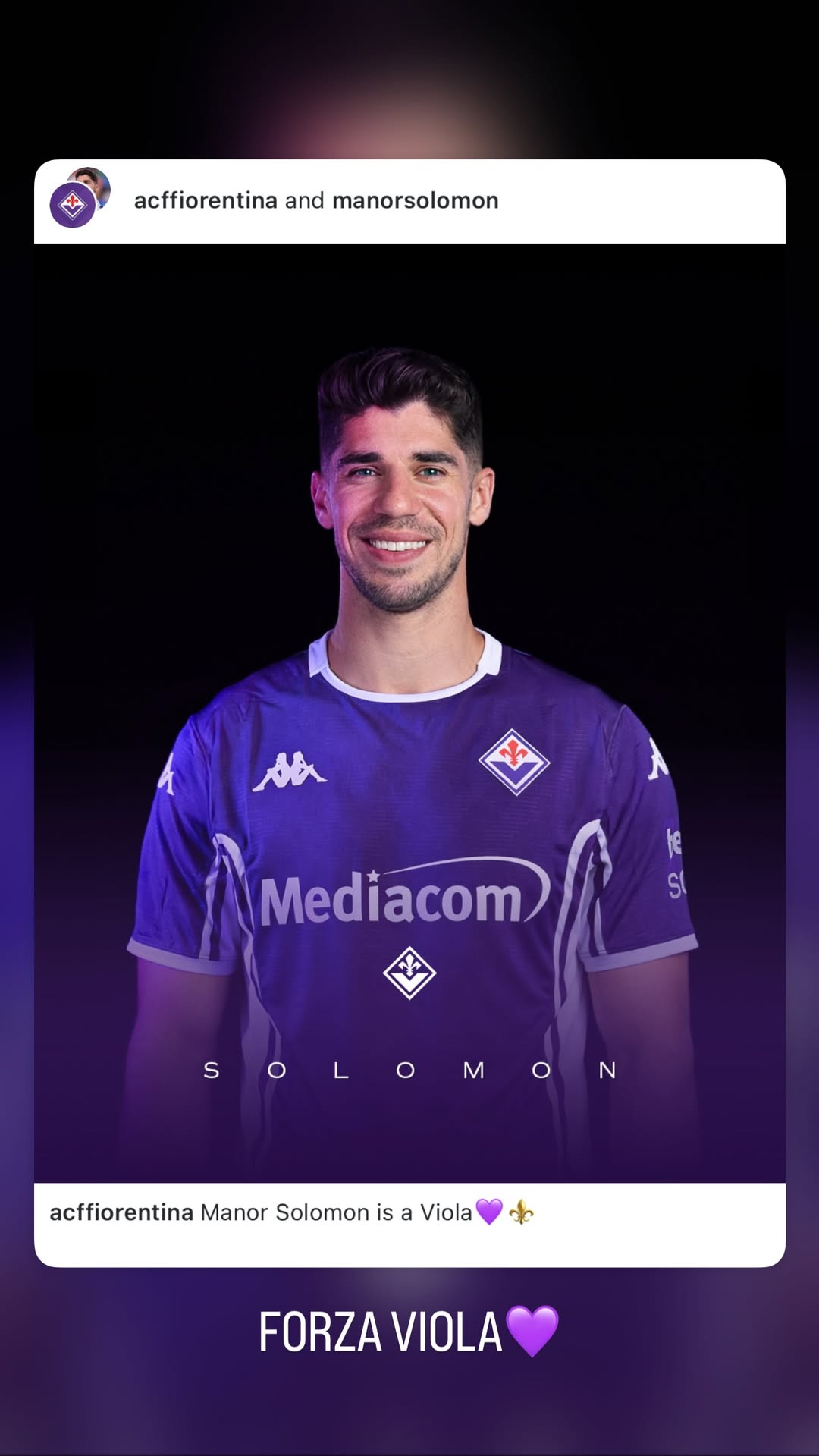 Manor Solomon risponde a Dodò anche a mezzo social: "Quanto è bello vederti di nuovo amigo"- ha scritto a corredo della foto che li ritrae insieme nel corso delle visite mediche del nazionale israeliano. Il classe '99 ha inoltre esultato dopo l'ufficialità del suo passaggio a Firenze. In un'altra storia su Instagram ha ripostato la foto con la propria maglia con un eloquente: "Forza viola".