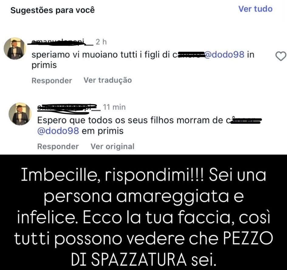 La compagna del brasiliano, ha infatti denunciato tutto attraverso il proprio profilo chiedendo aiuto e l'intervento della autorità preposte. Amanda ha condiviso nelle sue storie lo screenshot dei commenti ricevuti, accompagnandolo con una risposta durissima, con cui ha voluto esporre pubblicamente l’autore dei messaggi e difendere suo marito: "Rispondimi (all'utente)! Sei una persona amareggiata e infelice. Ecco la tua faccia, così tutti possono vedere che pezzo di spazzatura sei», ha scritto, condannando apertamente l’odio gratuito rivolto alla sua famiglia".
