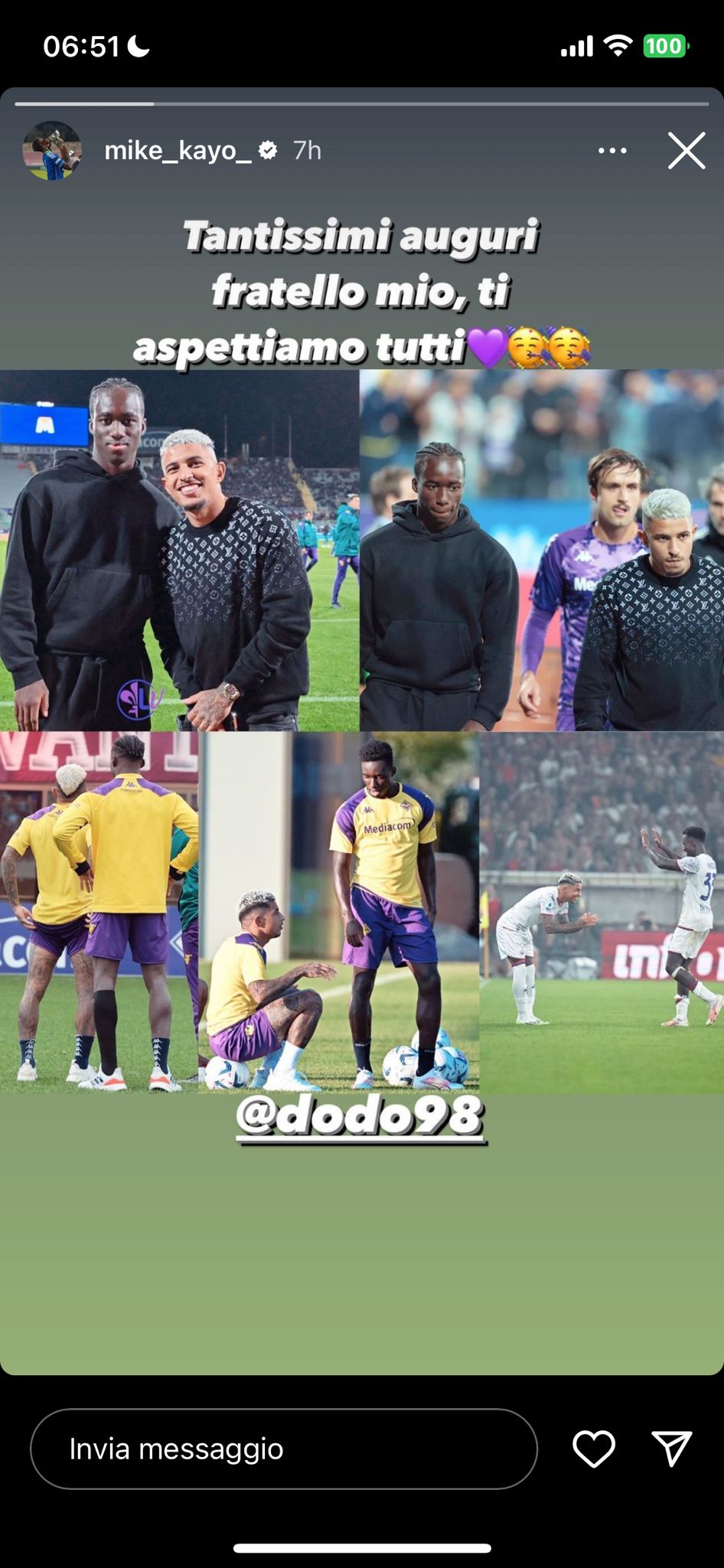 Oggi è il compleanno di Dodò. Il terzino brasiliano è uno dei punti di riferimento del gruppo viola, che ha conquistato Firenze con la sua tecnica e la sua simpatia. Ormai è noto l'ottimo rapporto con Kayode, che sui social, ha dedicato questo pensiero al suo compagno di reparto: