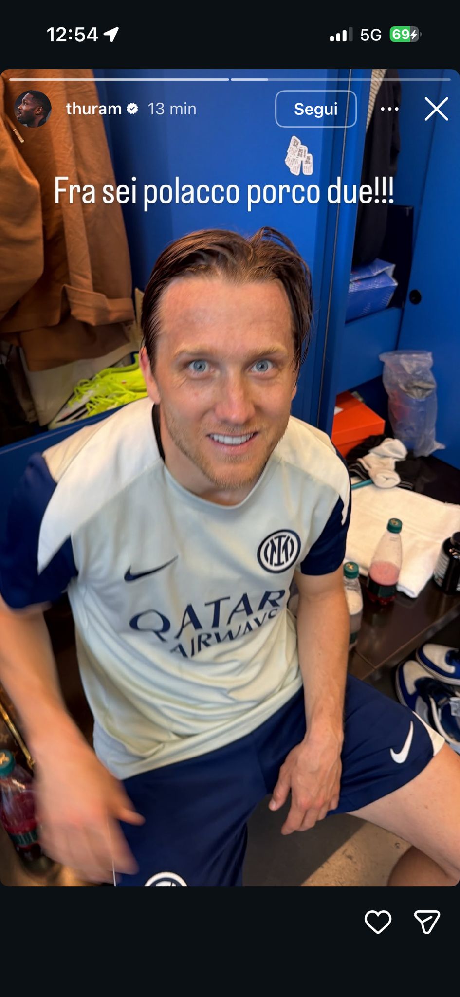 —Il francese ha infatti postato una foto in cui è ritratto Zielinski, calciatore polacco dei nerazzurri. E la didascalia è inconfondibile: "Fra, sei polacco porco due".
