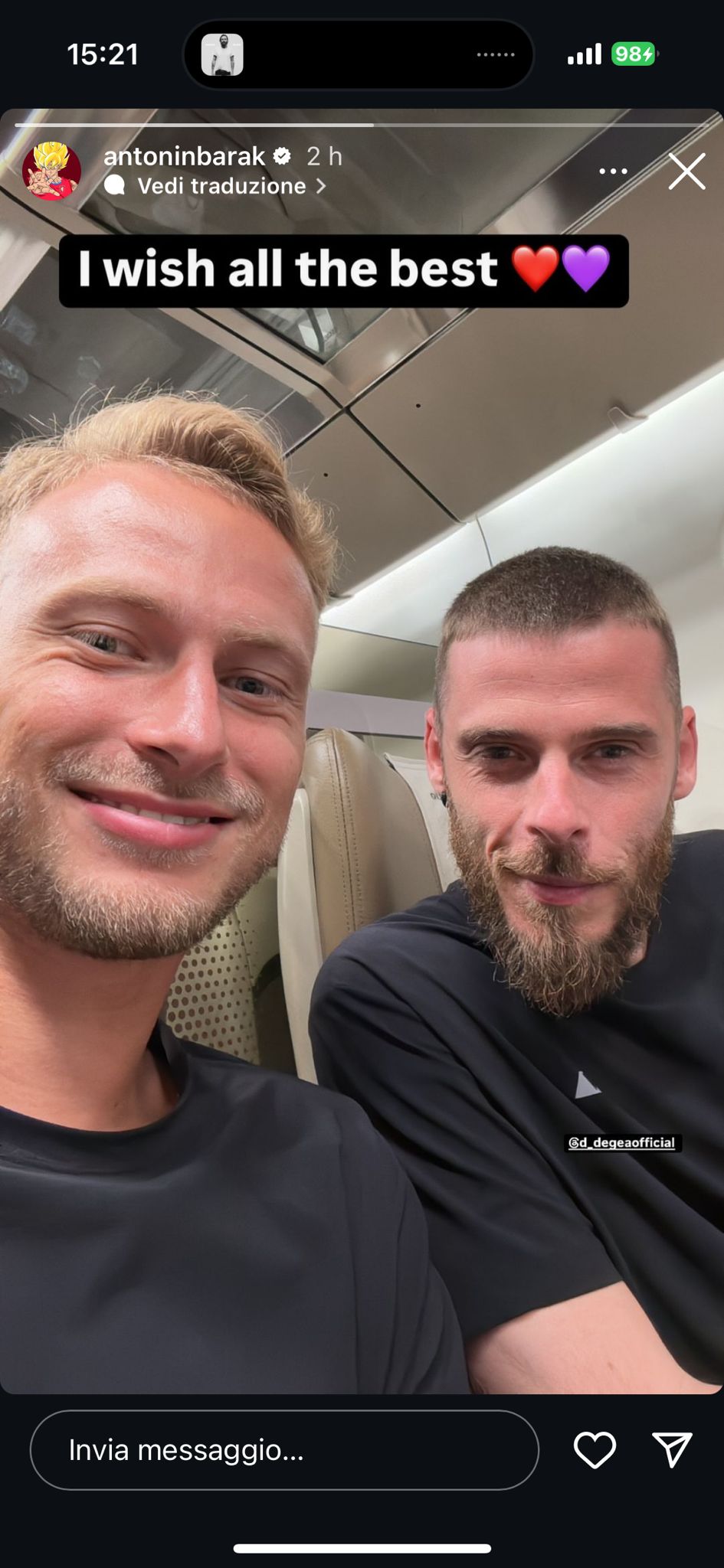 Oggi David De Gea, portiere della Fiorentina, compie 34 anni. Dal Manchester United alla Fiorentina, hanno dedicato dei post sui social per complimentarsi con lo spagnolo. Ma tra i tanti suoi colleghi che gli hanno dedicato un pensiero c'è anche quello di Antonin Barak che sui social ha scritto: "Ti auguro il meglio". La foto: