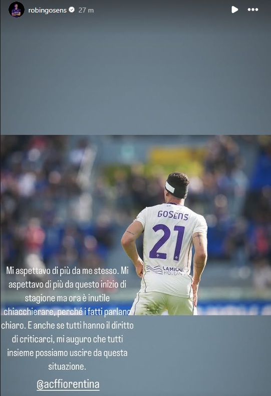 Robin Gosens è uno dei leader della Fiorentina e attraverso il proprio profilo Instagram ha espresso il suo stato d'animo: