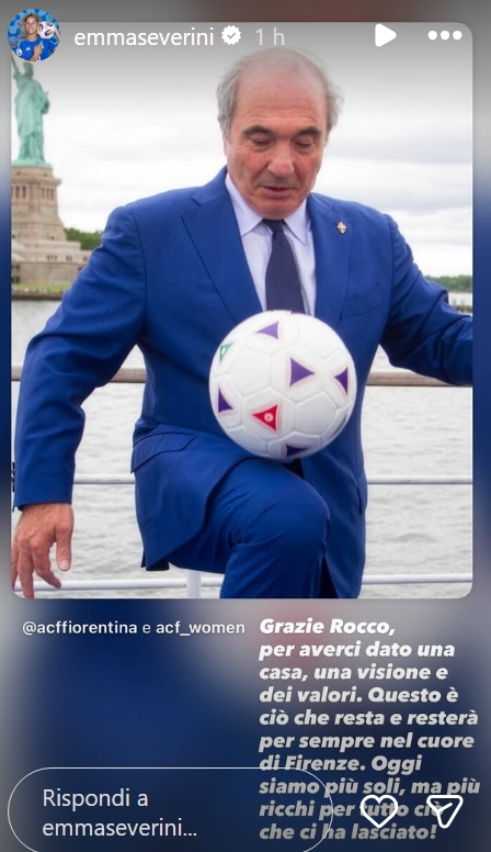 Dopo aver trovato la via della rete, la calciatrice ha mostrato una maglia speciale dedicata proprio al patron scomparso. Attraverso una storia Instagram, un'ora fa, la Severini ha poi ribadito il suo pensiero con parole cariche di gratitudine: "Grazie Rocco, per averci dato una casa, una visione e dei valori. Questo è ciò che resta e resterà per sempre nel cuore di Firenze. Oggi siamo più soli, ma più ricchi per tutto ciò che ci ha lasciato".