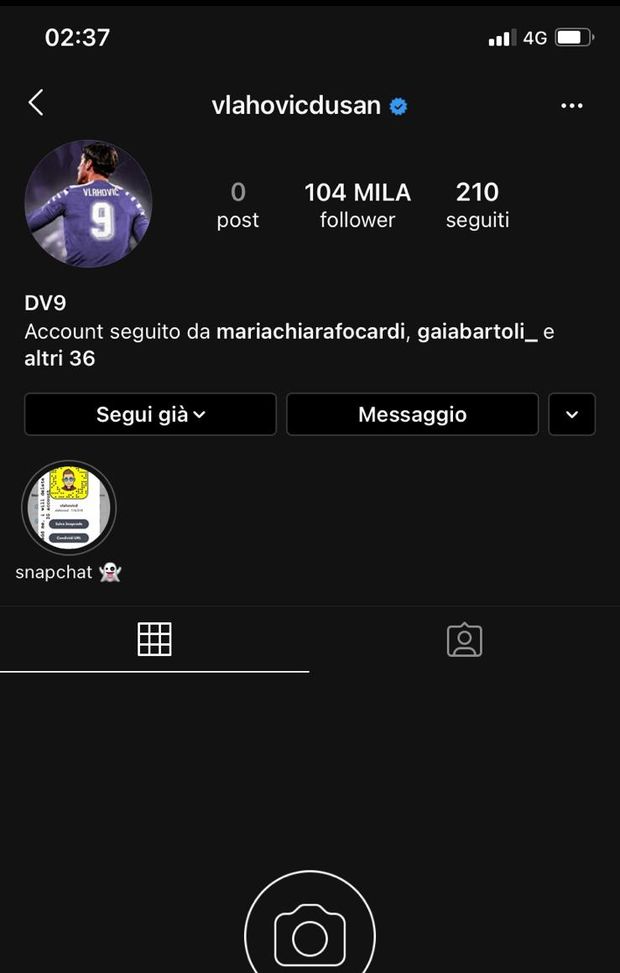 Che non sia stata una serata facile per Dusan Vlahovic lo si era capito subito, ma il giovane attaccante serbo deve aver accusato in maniera particolare il contraccolpo, perché il suo profilo instagram appare oggi vuoto. Probabilmente un tentativo di silenziare tutti i commenti negativi generati dal clamoroso errore che poteva mettere in ghiaccio la partita e dall'errata marcatura sulla rete di D'Ambrosio. (leggi anche il commento di Saverio Pestuggia Tutti bravi ma Vlahovic dov'era?) Qui sotto la schermata della pagina personale