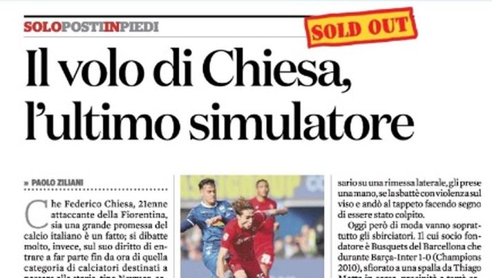 Nuovo giorno, nuovo attacco frontale ai danni di Federico Chiesa. L'ultimo, in ordine cronologico, arriva dal pezzo di Paolo Ziliani pubblicato ieri sul Fatto Quotidiano. Il titolo parla da sé: "Il volo di Chiesa, l'ultimo simulatore". A seguire ve ne proponiamo un estratto, lasciando a voi lettori il commento...
