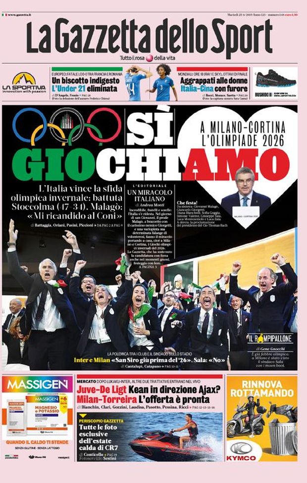 Le aperture di Gazzetta, CorSport e Tuttosport
