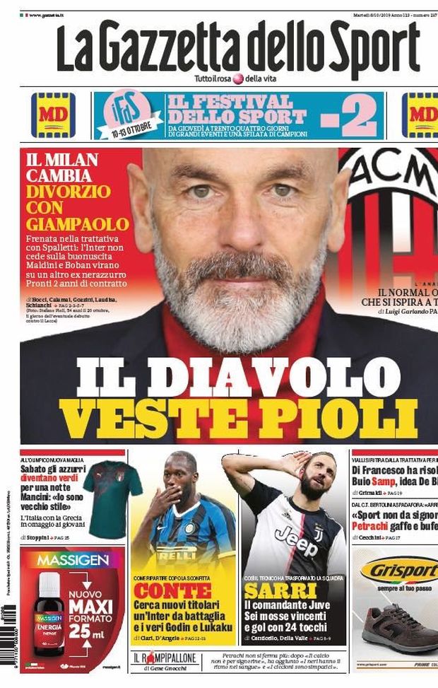 Le prime pagine dei quotidiani sportivi: “Il Diavolo veste Pioli”