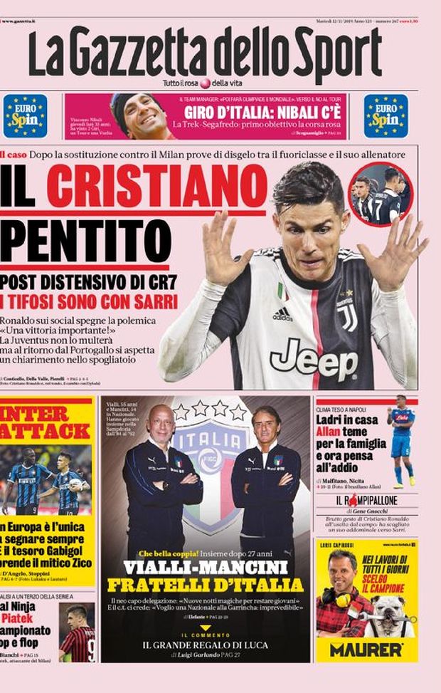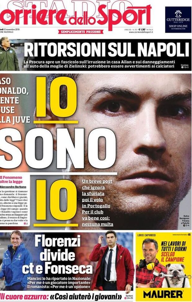 Le prime pagine dei quotidiani sportivi: tiene banco il caso Ronaldo