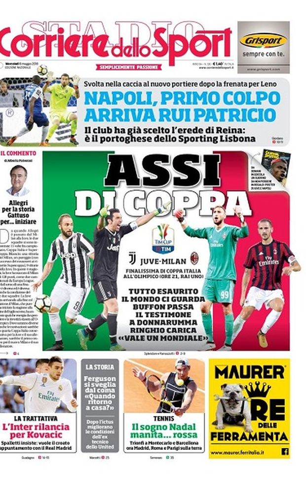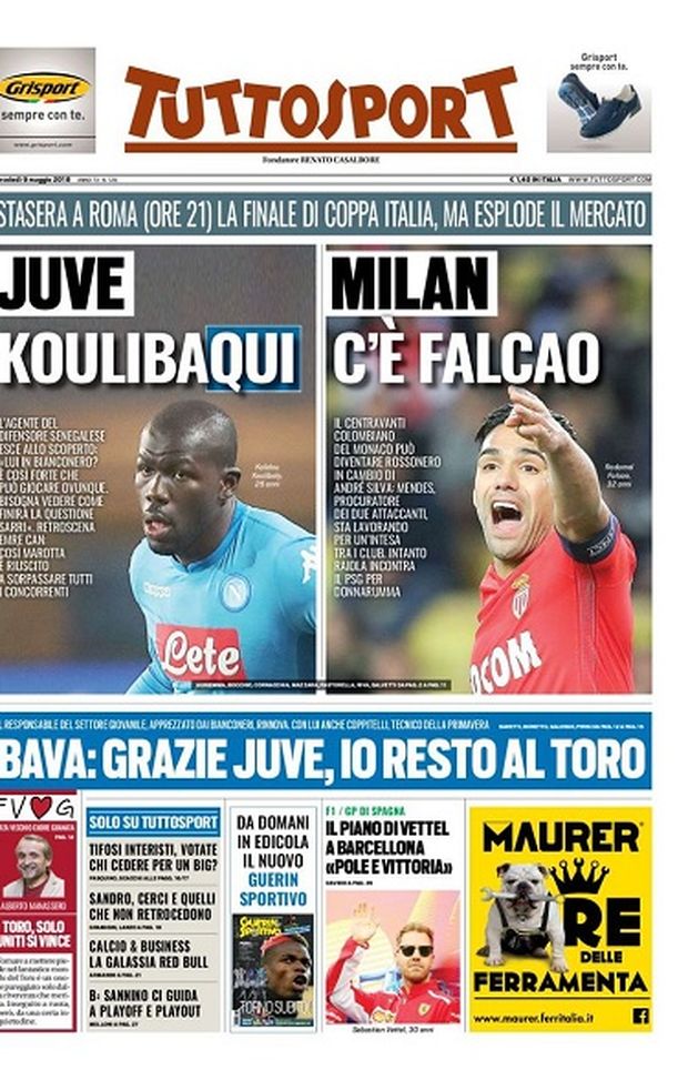 Le aperture oggi in edicola de La Gazzetta dello Sport, Il Corriere dello Sport e Tuttosport