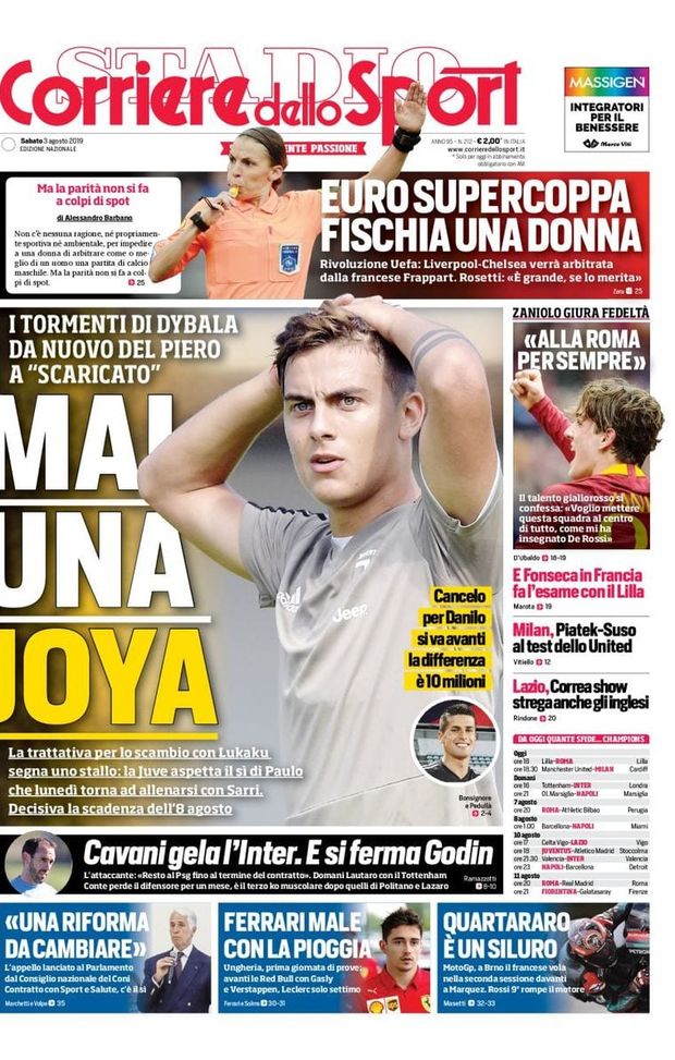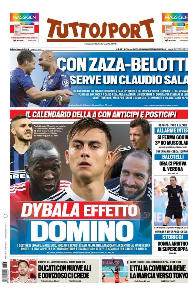 Ecco le aperture di Gazzetta dello Sport, Corriere dello Sport e Tuttosport