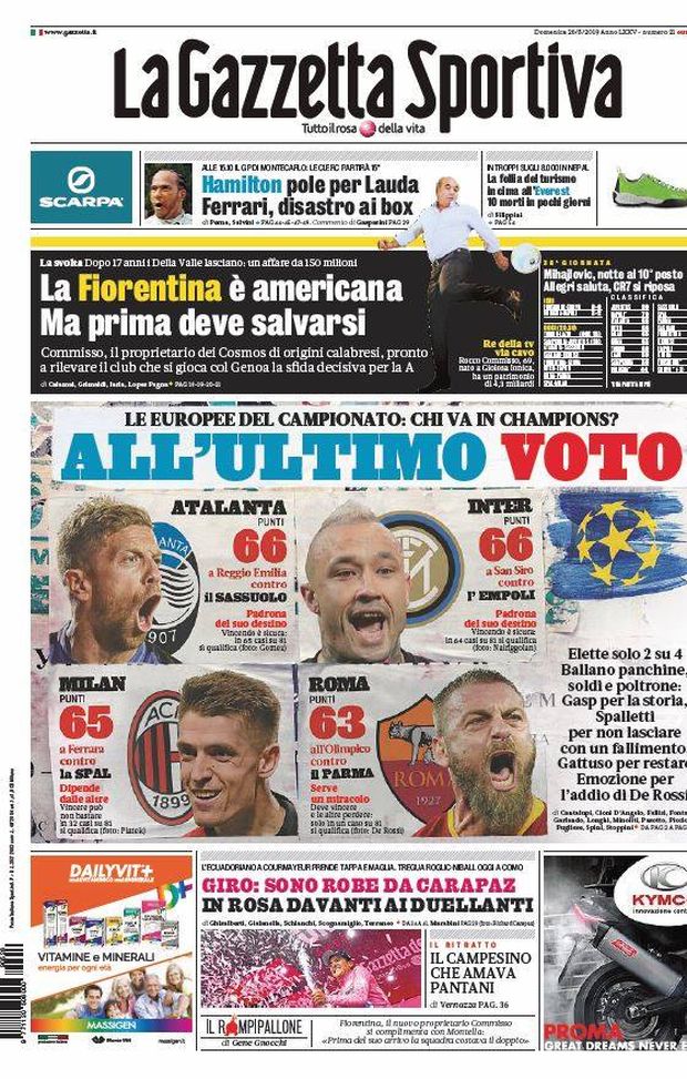 Ecco come aprono questa mattina Gazzetta dello Sport, Corriere dello Sport e Tuttosport