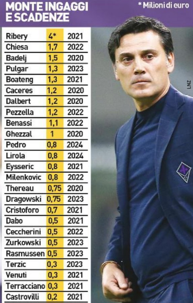 La Nazione si concentra sul monte ingaggi della Fiorentina che si assesta intorno ai 50 milioni di euro. Il Paperone è Ribery (4 milioni netti a stagione), Sottil e Ranieri i meno costosi. Per quanto riguarda Federico Chiesa, il cui contratto scadrà nel 2022, la Fiorentina ha deciso che la sua posizione sarà rivista dopo il braccio di ferro dell'estate scorsa. Al giocatore sarà proposta una nuova scadenza e con il prolungamento l'ingaggio sarà da top player.