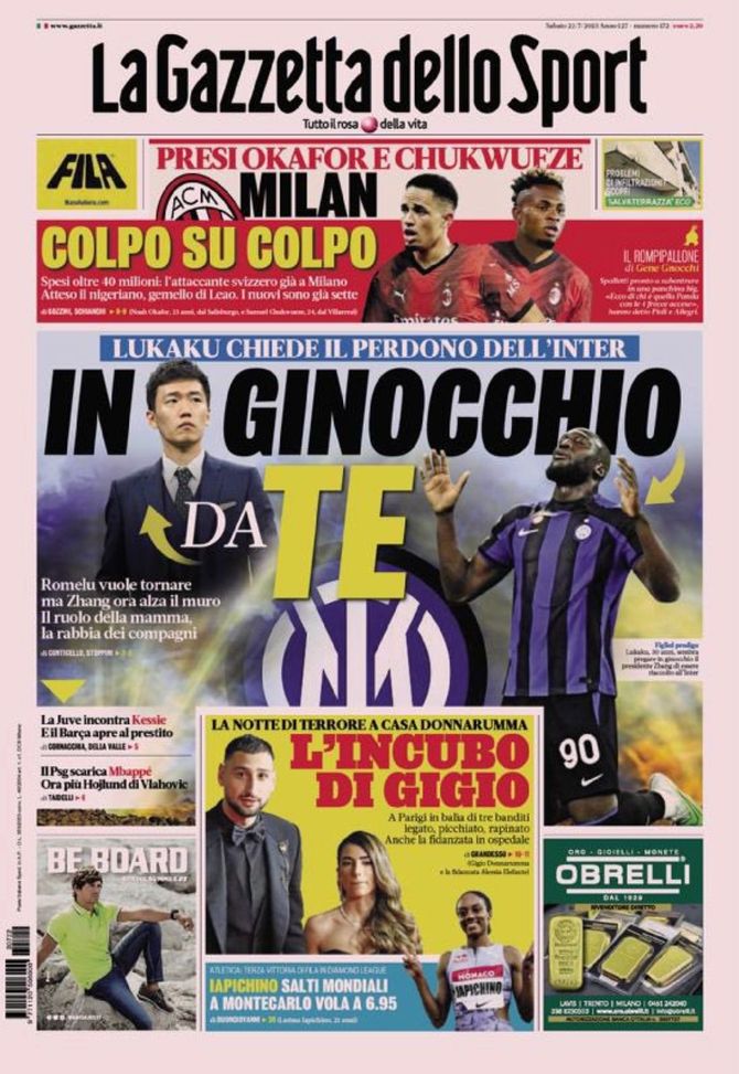 Le prime pagine dei quotidiani sportivi: “Lukaku, in ginocchio da te”