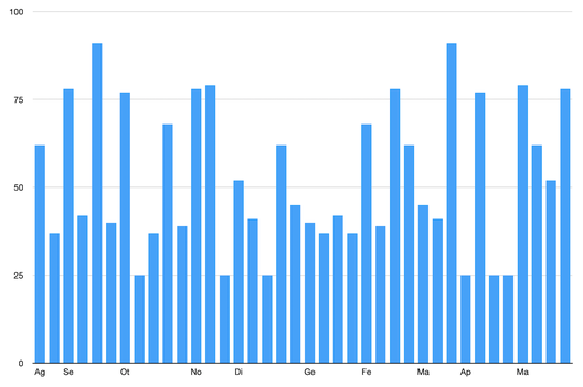 Ieri sera è stato stilato il calendario della Serie A 2021/22che come certamente saprete non rispecchia più l'andamento speculare fra girone di andata e quello di ritorno. Le giornate sono diverse e le fasi del torneo anche. Ci sono momenti più difficili (per la Fiorentina l'inizio non sarà dei più semplici) e altri forse più 'dolci'. Per questo riproponiamo un grafico con le 38 giornate e i punti dell'avversaria che i viola dovranno affrontare. Per le neopromosse abbiamo oprato per la media dei punti conquistati dalle tre squadre retrocesse lo scorso anno.