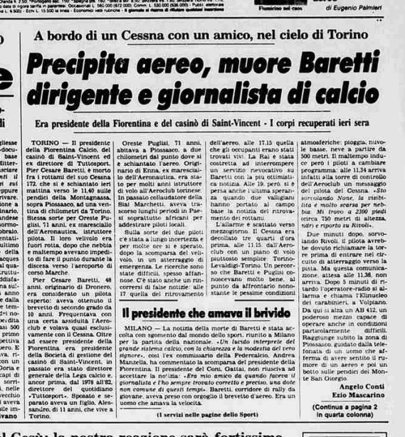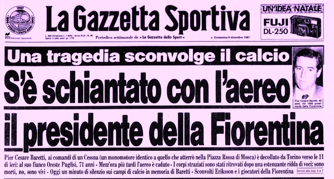 Pier Cesare Baretti venne eletto 14° presidente della storia della Fiorentina il 6 giugno 1986, subentrando a Ranieri Pontello. Morì il 5 dicembre 1987 in seguito ad un incidente aereo. Il suo successore fu Lorenzo Righetti ---> MARIO CECCHI GORI