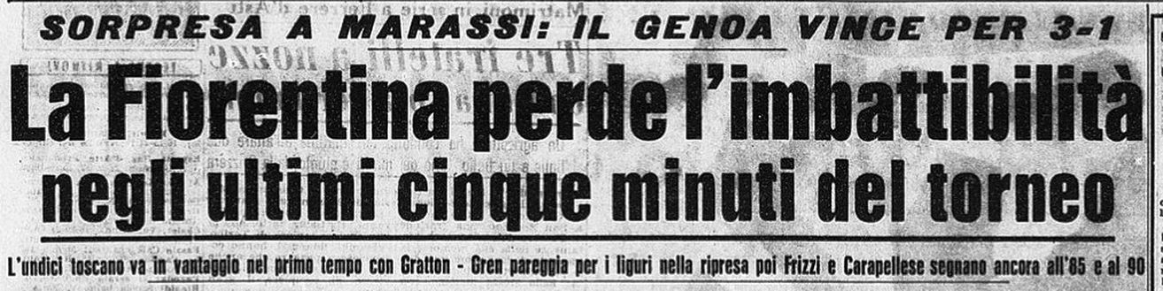 Le proteste dei giocatori della Fiorentina non si contavano. Dopo che il "professor" Gren, ex viola realizzò dal dischetto per il Genoa, pare che Montuori stesso, in segno di sfida verso il direttore di gara, impose ai suoi compagni del reparto d'attacco la "retrocessione" in difesa, per dimostrare che l'indistruttibile Fiorentina poteva giocare anche con i reparti invertiti.