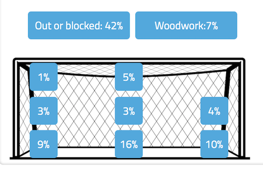 Infine vi proponiamo le percentuali dei tiri effettuati dal giocatore con il 42% finiti fuori o stoppati dai difensori e il 7% finiti sui legni.